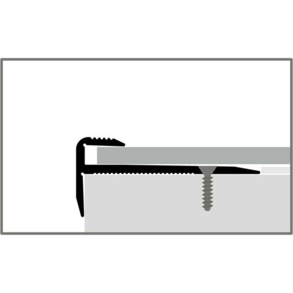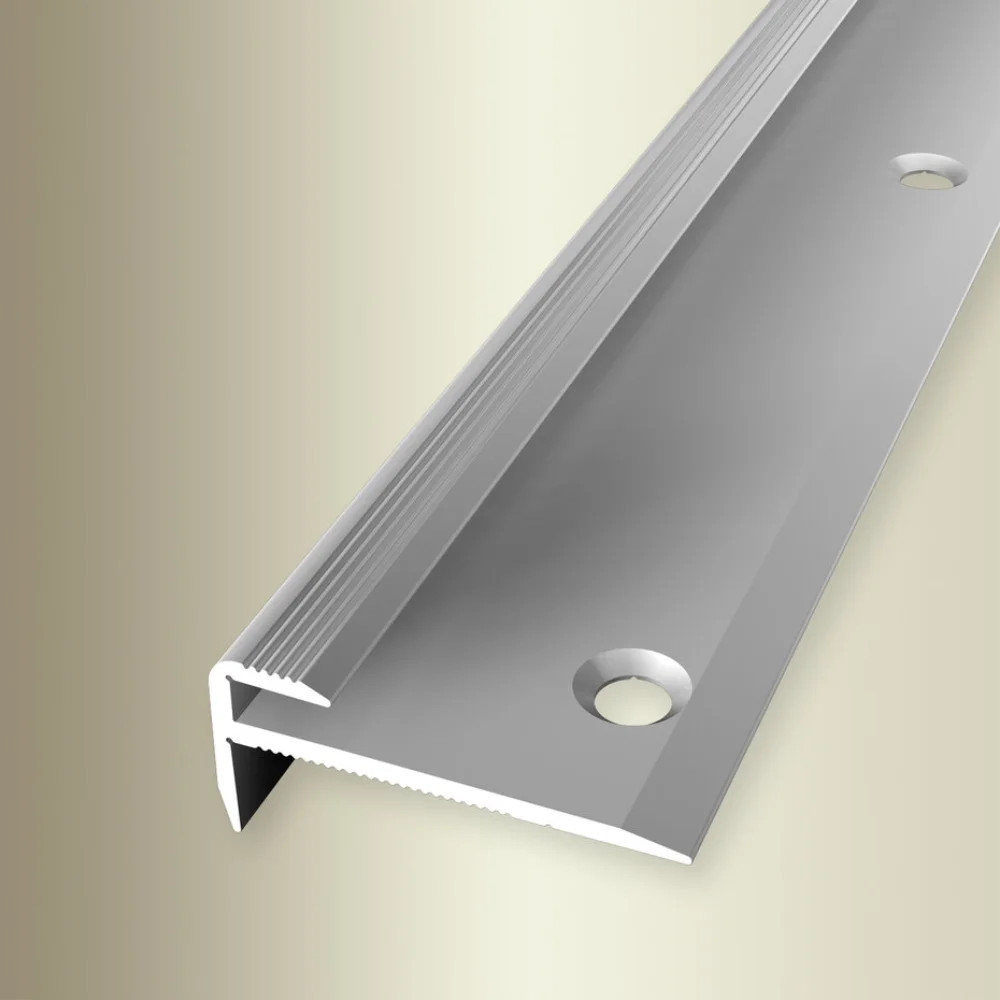 L alakú derékszögű alumínium profil, gömbölyített éllel, csavarozható talp résszel. Lépcsőfokok éleinek védelmére. Beépítése a burkolat fektetése előtt történik csavarozással. Vékony LVT - SPC burkolatokhoz tervezve, max. 3 mm anyagvastagsághoz. Prémium minőségű esztétikus lezárás, többféle színben is elérhető.
