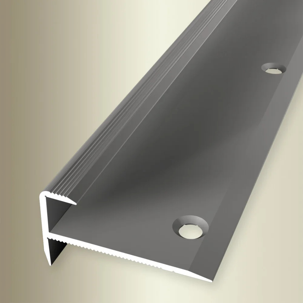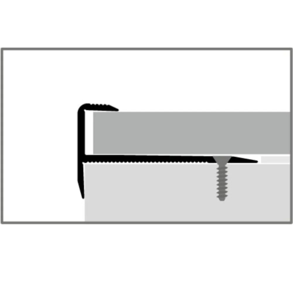 L alakú derékszögű alumínium profil, gömbölyített éllel, csavarozható talp résszel. Lépcsőfokok éleinek védelmére. Beépítése a burkolat fektetése előtt történik csavarozással. Max. 8,5 mm anyagvastagsághoz. Prémium minőségű esztétikus lezárás, többféle színben is elérhető.