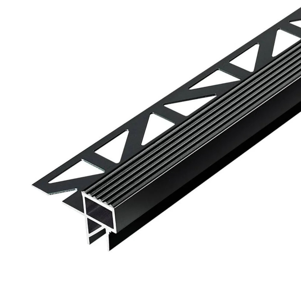 A porszórt alumínium, matt fekete színű felület nemcsak vizuálisan illeszkedik a modern burkolati trendekhez, hanem tartós, kopásálló bevonatot is biztosít. A profil felfelé 11 mm magas, lefelé 14 mm takarással rendelkezik, így esztétikus éllezárást és stabil élvédelmet garantál. A 250 cm hosszúság gazdaságos kivitelezést tesz lehetővé nagyobb lépcsőfelületeken is.